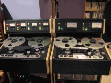 The first 2 track recorder (left) and the first 4 track recorder (right). (Roll mouse over for bigger view).