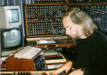 There was a growing problem with this cheapo approach to multi-tracks; stopping and starting the recorders to run in the various sounds at the right time was a real headache. I needed some form of automated remote control. This came along in the form of a BBC micro, remember them? You can see it in the picture opposite just by above my right hand. By this time I had an Atari, remember them too? The BBC’s screen is the lower one under the Atari monitor. I rigged up a relay box operated from a simple tape start, stop recorder program I’d written partially in assembler and partially in basic for the BBC micro. The screen shows the first 3 tapes running. With this program I could start and stop nearly all my tape machines from the BBC’s keyboard and record on the fly and edit the results, saving the takes to floppy disk.